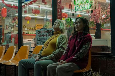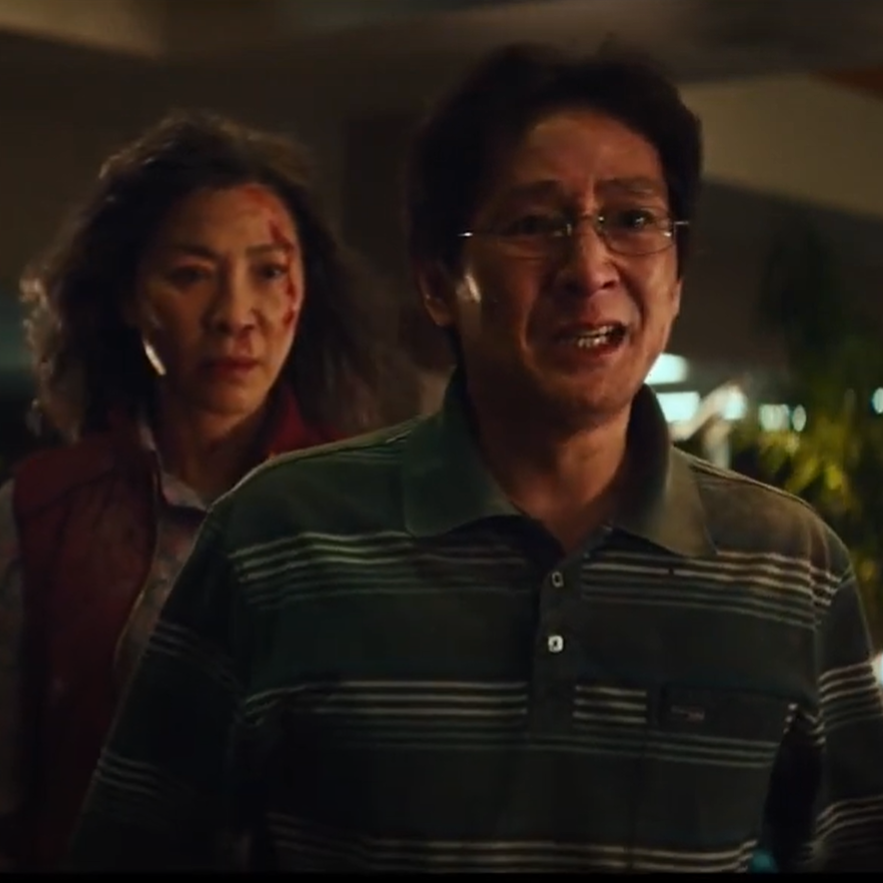 A related detail, while Evelyn begins her story wearing red, she wears blue in the final scene, further symbolizing her character arc of assuming her husband’s optimistic mindset. When looking at the specific meaning of blue apart from green, we find that the term 蓝 is used in metaphors conveying ideas of nobleness, manual work, and wonderful dreams (Li). Her wearing blue matches the final snapshot of her character development in that she showed nobleness by saving the day. Blue also implies manual work, befitting for a working class, immigrant family being audited. Additionally, blue metaphors in Chinese may convey the idea of dreams. Before cutting to black, we see Evelyn looking around with diverted attention, dreamily taking in the multitude of realities transpiring around her.