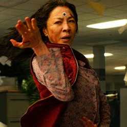 Accordingly, Waymond, with his signature green color, 绿, is the peacemaker of the family, choosing to fight with gentleness, communication, and optimism rather than violence. When referring back to the Five-Elements-Theory, we see that cyan is negatively impacted by white. I take this to mean that Waymond is saddened by his wife and daughter’s conflict. Waymond is cheerfully accepting of Joy’s partnership with Becky, yet Evelyn’s fearful denial creates a rift throughout the whole family. On the positive side, black exerts a productive influence on cyan, which ties to Waymond’s choice to respond to life’s darkness with kindness.